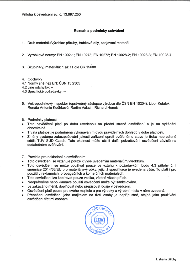 CS STEEL a.s. má certifikovanou výrobu obráběných dílců pro tlakové nádoby dle směrnice 2014/68 EU provedené zákonem 90/2016Sb. a NV č.219/2016 Sb. v platném znění.